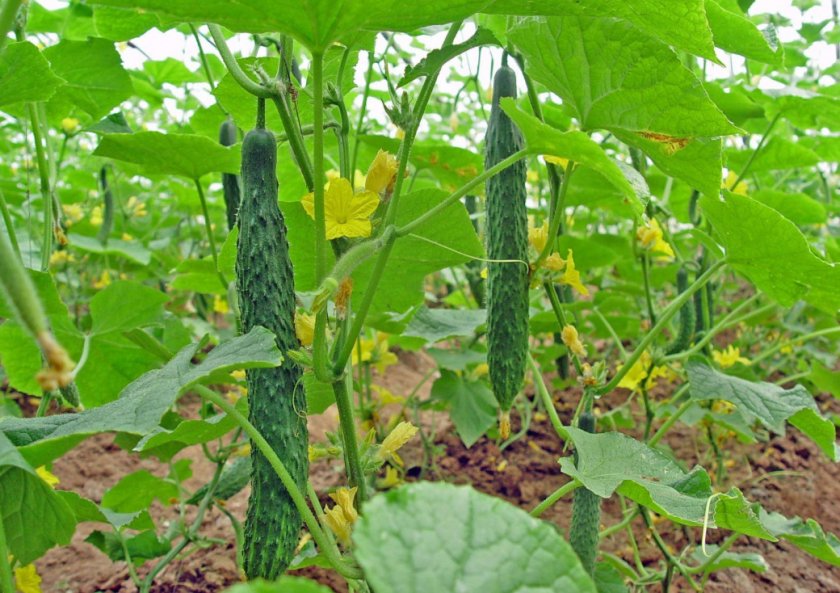 Длинные ветви кустов нужно подвязывать к шпалере: в висячем положении огурцы данного сорта вырастают ровными и красивыми.