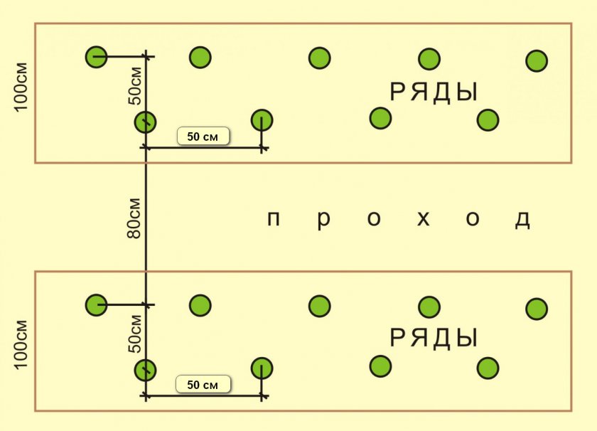 Из-за густой ветвистости расстояние между кустами должно быть не меньше 50 см.