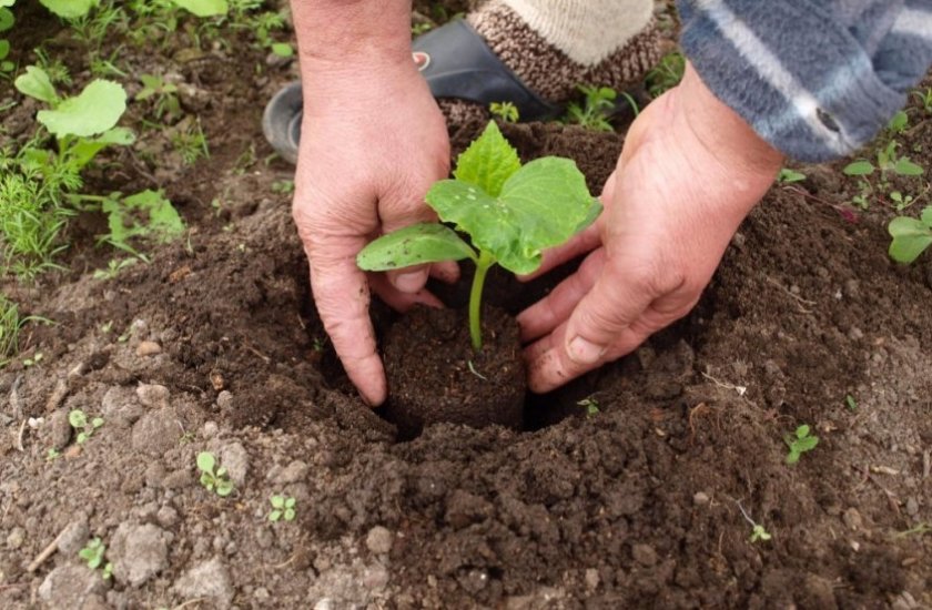 Пересадка рассады в открытый грунт приходится на май-июнь, когда установится теплая погода. Чтобы саженцы быстрее принялись, лучше всего за 1-2 недели начать проводить закаливание. К моменту пересадки в грунт, на ростках должно быть уже 2-3 настоящих листика. Расстояние между саженцами соблюдается в 50-70 см, чтобы огурчикам было, как расти и развиваться.