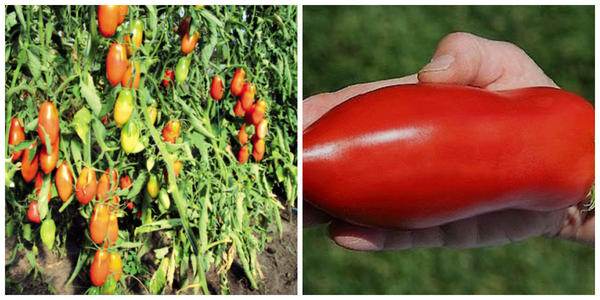 Детерминантный (30-40 см), культивируется в открытом грунте и комнатных условиях. При выращивании в теплице кусты достигают в высоту 50-60 см. Раздвоенные на конце красные плоды длиной примерно 10-12 см, массой около 80 г. Плотные малосеменные томаты идеально подходят для консервирования.