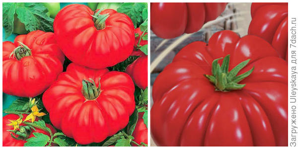 Предназначен для выращивания в теплицах и открытом грунте. Растения сорта высокорослые, их мощные кусты могут достигать в высоту 1,5-2 м. Очень красивые ярко-красные ребристые плоды весят примерно 500-700 г. Сорт высокоурожайный, устойчив к основным заболеваниям томатов.
