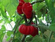 Впрочем, практически у всех крупноплодных томатов надо дополнительно подвязывать кисти. Кроме моего следующего любимца, «Бычьего сердца». Его я тоже всегда выращиваю год от года, как советовала мне ещё моя бабушка. «Он тебя никогда не подведёт!» – говорила она, и каждый год я в этом убеждаюсь. Даже если семена я взяла свои, а не фабричные, «Бычье сердце» неизменно плодоносит и совершенно не требует пасынкования, хоть и является сильнорослым. Как-то у меня не хватило места в теплице, и один куст «Бычьего сердца» у меня рос на улице без укрытия. Вырос до 1 м вместо 140-150 см в теплице, но всё равно порадовал.