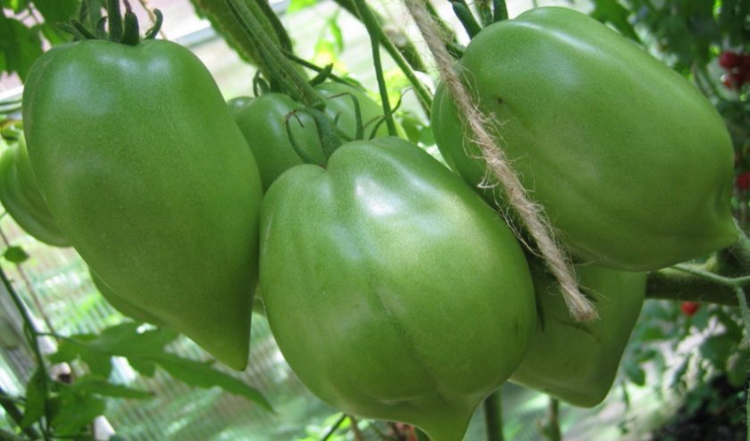 По величине описывают пределы 500-700 г, а вот на фото видно, что томаты явно не дотягивают до указанных цифр.
