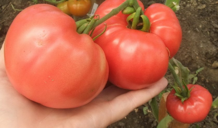 Плоды розового, насыщенного цвета, плотные, мясистые с отличными вкусовыми показателями. Нижние кисти подарят томаты весом до 400 г. На верхних плоды будут весом 250-300 г, но созревают все одновременно.