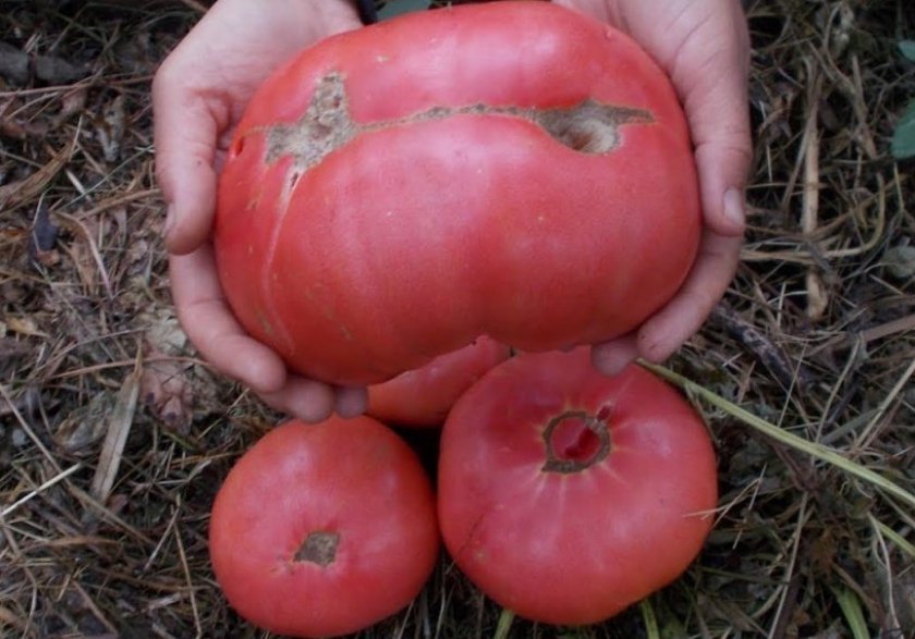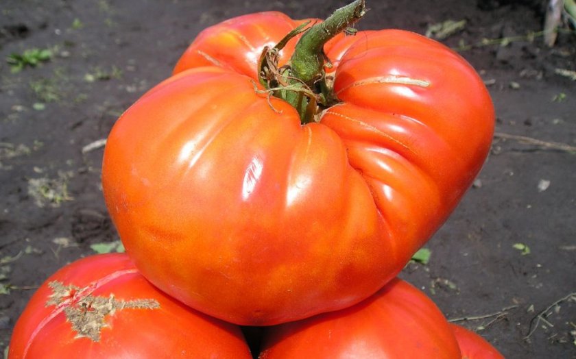 Люблю, чтобы плоды были крупные и правильные по форме. Поэтому предпочитаю сорта Ранняя роза, Персик, Тяжеловес Сибири и Розовый инжир. В этом году вырастила Бабушкин секрет. Куст детерминантный, высота в среднем 180 см. Килограммовые плоды у меня ни разу не получились, максимальный вес 700-800 г. Наверное, это потому, что допускаю формировку куста и в два, и в три стебля.