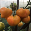 Ипотечный лефте (Mortgage Lifter, США) Индет, среднеспелый. Плоды плоскоокруглые, желто-оранжевого цвета, с красной шапочкой и размытыми пятнами, в полной спелости становится почти красным. Вес был до 400 грамм. Очень хорошего вкуса.